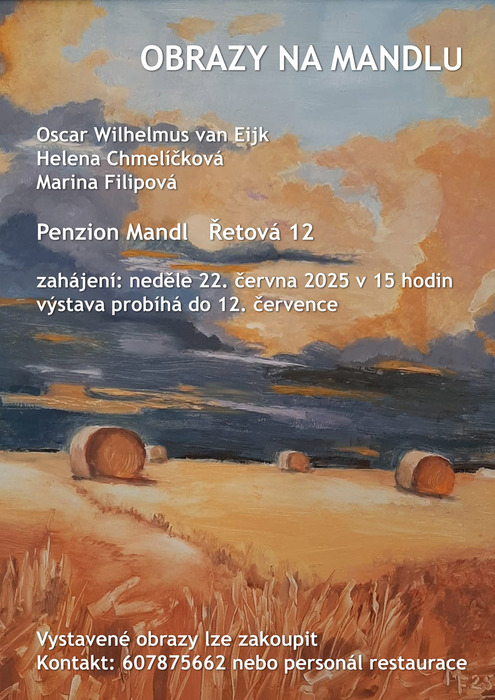 Úvod > Obec > Aktuality > Obrazy na Mandlu, penzion Mandl, zahájení 22.6.2025 v 15 hod.