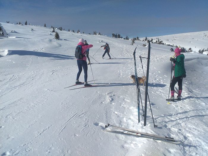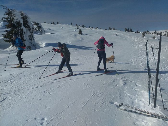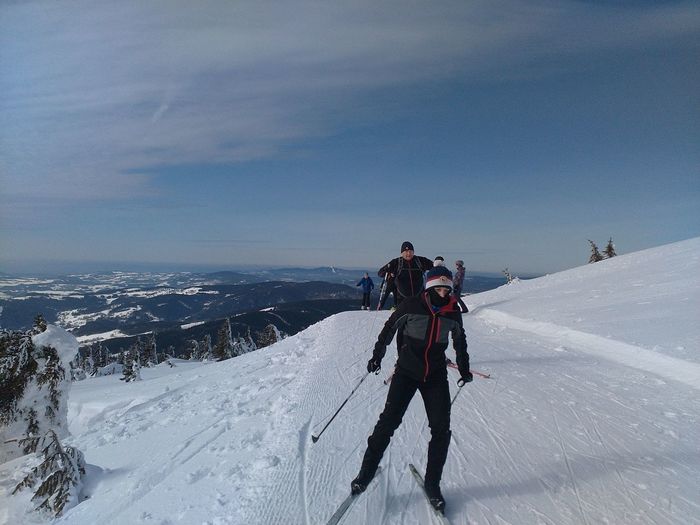Počasí nám opět přálo, slunce svítilo, bylo chladno přiměřeně, sjezdovky upraveny, jen těch lidí díky počasí bylo na vlecích dost. Sjezdaři mohli využít všechny sjezdovky a vleky v údolí. I pěší si lanovkou vyjeli na hřeben spolu s běžkaři a díky umrzlému sněhu si klidně mohli projít část hřebenu a pokochat se krásnými výhledy na Sněžku , Ještěd a široké okolí. My běžkaři jsme vyrazili na hodně umrzlé hřebeny Krkonoš, ale s tím jsme už po minulém zájezdu tak trošku počítali… Odměnou nám byly krásné výhledy, ale dělat rekordy v délce ušlé trasy se nedalo. Na rozdíl od Jeseníků, Rychlebských hor nebo Orlických hor v Krkonoších běžkaře opravdu nerozmazlují úpravou stop. Mazat běžky bylo koníčkem všech, kdo měl klasické běžky, ale stejně nejúčinnější bylo „namazat zevnitř“. O zábavu bylo postaráno vtipnými pády. Cestou jsme se mohli občerstvit, na to jsou Krkonoše příjemné. Někdo navštívil Vrbatovu boudu, někdo Voseckou boudu a šance byla navštívit i Mumlavské vodopády, ke kterým ale bylo hodně náročné vůbec dojít díky umrzlému terénu. A co teprve cesta zpět podle dřevěného zábradlí ve výši kolen. To si mnozí odpustili.